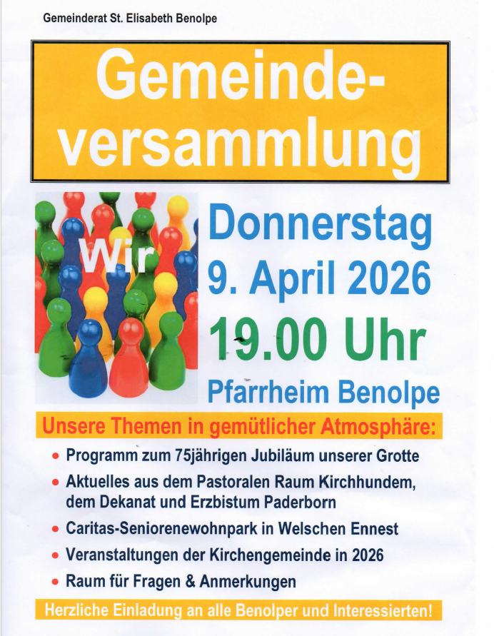 Zur diesjährigen Generalversammlung mit Neuwahl der Teamsprecherin und Beisitzerin, Kaffeetrinken, Unterhaltungsprogramm mit der Theatergruppe sowie Abendessen lädt die Frauengemeinschaft für…